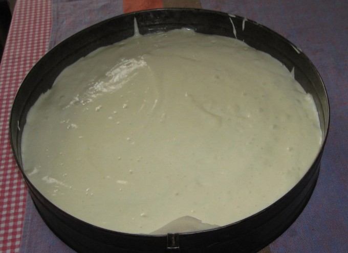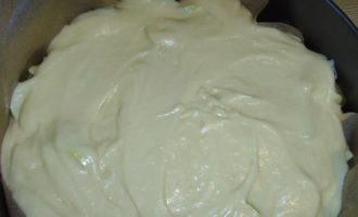 - Vet een ovenschaal in met boter, giet het deeg erin en strijk het voorzichtig glad.Plaats de cakevorm in een voorverwarmde oven op 180 graden en bak tot hij gaar is.