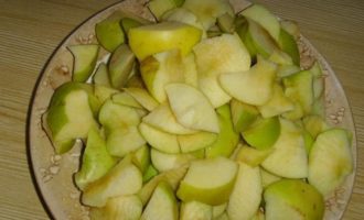 - Bereid eerst alle benodigde ingrediënten voor de charlotte voor. Was de appels onder stromend water en snijd ze in blokjes of schijfjes. Zorg ervoor dat u de zaden en stengels verwijdert.