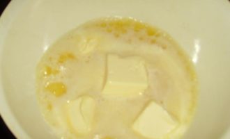 Snijd de boter in blokjes, doe in een geëmailleerde kom en laat een beetje smelten.