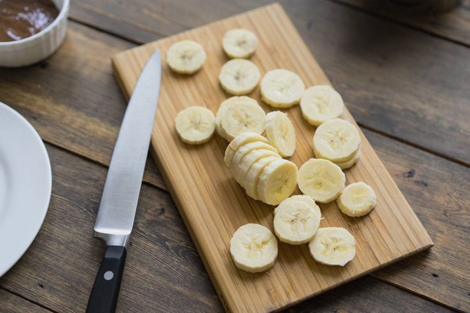 - Was de bananen onder stromend water en schil ze. Snijd de bananen in plakjes of halveren. Dompel de bananen in een kom met deeg en meng voorzichtig.