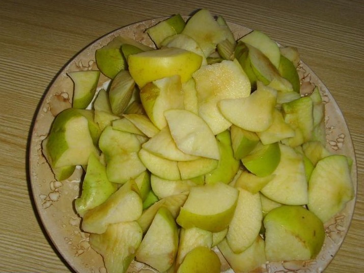 - Bereid eerst alle benodigde ingrediënten voor de charlotte voor. Was de appels onder stromend water en snijd ze in blokjes of schijfjes. Zorg ervoor dat u de zaden en stengels verwijdert.