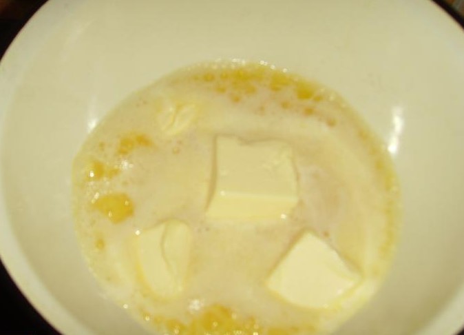 Snijd de boter in blokjes, doe in een geëmailleerde kom en laat een beetje smelten.
