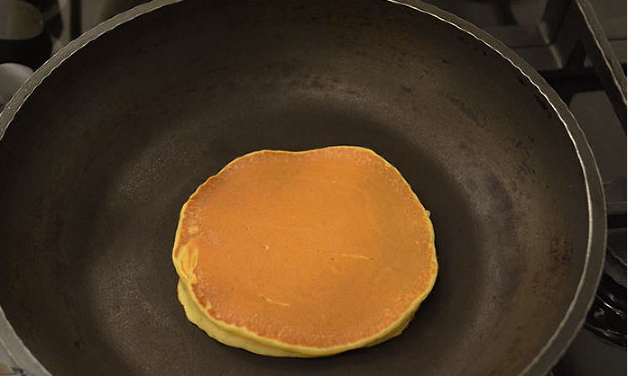 Tip: Om de pannenkoeken echt gezond en dieet te maken, gebruik je een koekenpan met antiaanbaklaag, zodat we geen plantaardige olie hoeven te gebruiken tijdens het bakken.