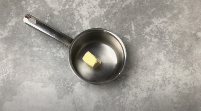 - De boter moet worden gesmolten. We mengen het met kefir en rijden hier het ei in.