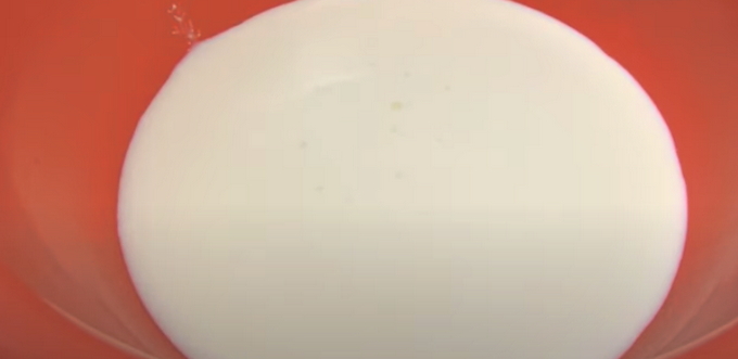 - Giet kefir in een kom, meng er frisdrank mee. We wachten 10 minuten op de reactie tussen de producten.