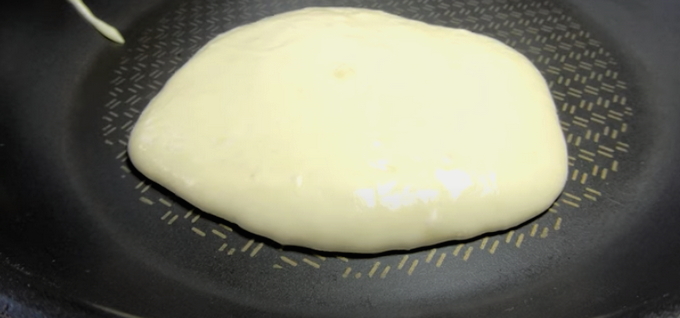 - We bakken pannenkoeken in een voorverwarmde pan. Pannenkoeken zijn iets groter dan pannenkoeken. Neem ongeveer een halve pollepel deeg. Bak aan beide kanten zodat de bovenkant van de pannenkoek goudbruin is.