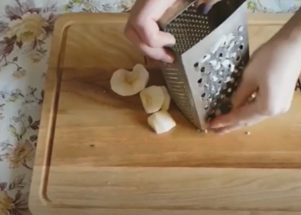 - We wassen en schillen de appels. Daarna wrijven we met een fijne rasp en indien mogelijk is het voor de eenvoud beter om een blender te gebruiken.