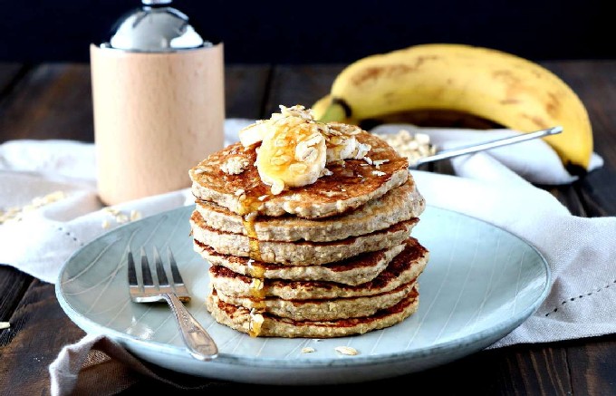 Luchtige bananenpannenkoekjes bereid met kefir