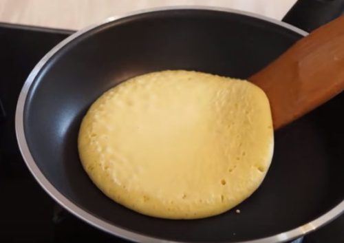 - We bakken pannenkoeken in een voorverwarmde pan. Pannenkoeken zijn iets groter dan pannenkoeken. Neem ongeveer een halve pollepel deeg. Bak aan beide kanten zodat de bovenkant van de pannenkoek goudbruin is.