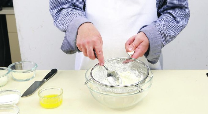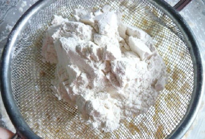 - Wrijf de afgewogen wrongel door een fijne zeef. Klop het ei en de dooier met een garde met de kristalsuiker luchtig. Voeg zure room toe en roer. Meng de wrongel met het ei, voeg bloem toe en mix met een staafmixer of klop in een keukenmachine. Haal het deeg een half uur in de koelkast.