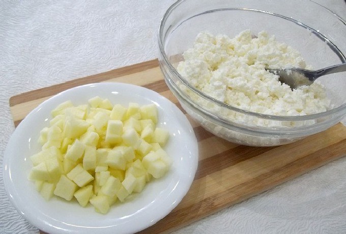 Cheesecakes met appels smaken een beetje als wrongelpannenkoeken, ze worden sappig, zacht en hebben een heerlijke appelsmaak. Het is het beste om een zoetzure appel te kopen om een interessante smaaknoot aan het eindproduct toe te voegen.