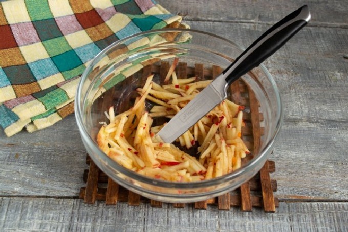 - Rasp de zoetzure gewassen appel grof, zonder de schil te verwijderen.
