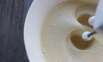 - Klop de eieren, vanilline en suiker in een aparte kom. Het volume moet 2-3 keer toenemen en in kleur moet de eimassa bijna wit worden.