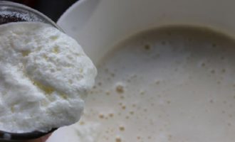 Kefir moet op kamertemperatuur zijn. We mengen kefir met eiermassa.