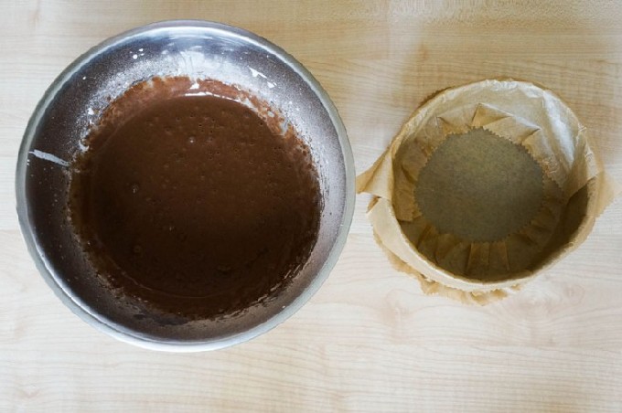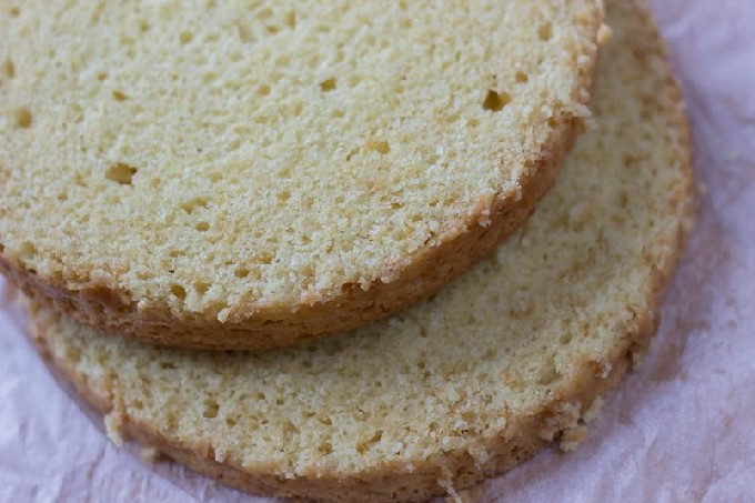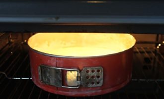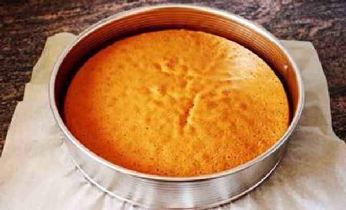 - We bekleden het perkamentpapier in een ovenschaal, brengen het deeg erin en sturen het om in de oven op 180 graden te bakken. De baktijd is 40-50 minuten. Nadat het koekje volledig is afgekoeld, gaan we verder met het vormen van de cake.