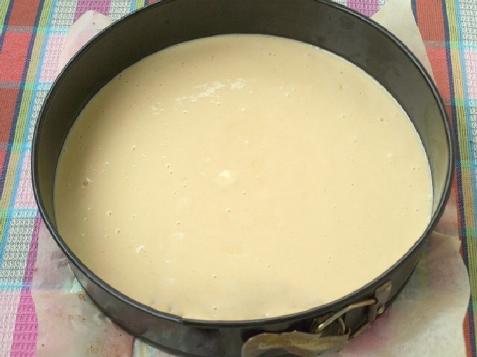 - Vet de ovenschaal in met olie, giet het deeg erin. Verwarm de oven voor op 180 graden en zet de vorm met het deeg daar 35-40 minuten in. We controleren het koekje op gereedheid met een houten spies, het deeg mag er niet aan plakken als je de cake doorprikt. We halen het afgewerkte koekje uit de vorm, laten het afkoelen en combineren het naar onze smaak met bijvoorbeeld je favoriete jam, room of gecondenseerde melk.