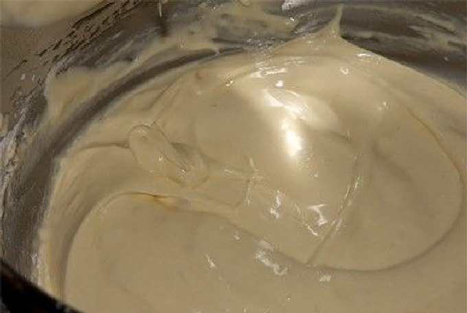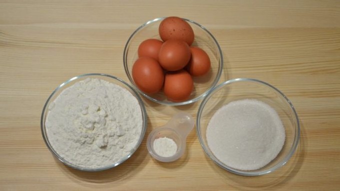- We mengen ook de bloem, de rest van de suiker, bakpoeder, zout apart. Giet dit alles in een mengsel van dooiers en een deel van de eiwitten, voorzichtig, langzaam, mix tot een gladde massa. Daarna combineren we het resulterende deeg met de rest van de eiwitmassa, mengen met de klok mee in een cirkel.