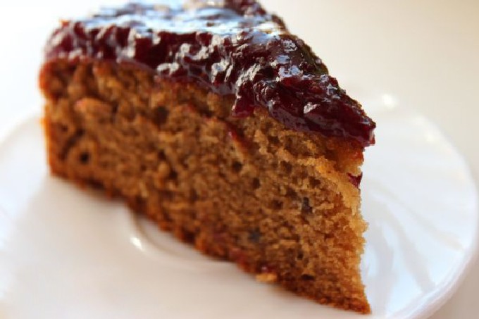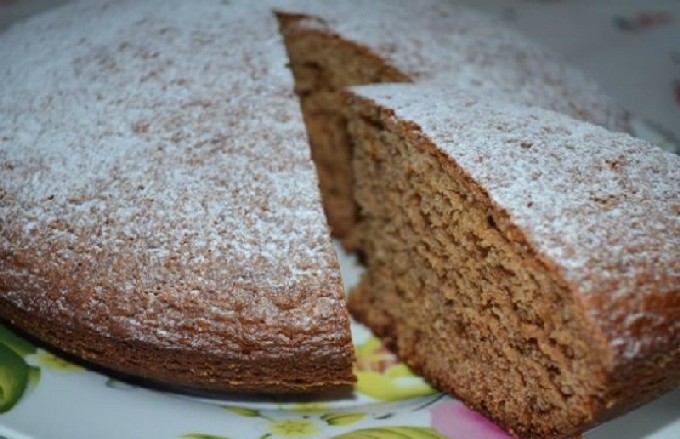 - Vet de vorm in met olie, giet het resulterende deeg erin. We bakken het koekje in de oven op 180 graden gedurende 40 minuten, controleer de gereedheid met een houten spies. We laten onze lekkernij afkoelen in de oven, snijden hem dan en serveren hem met jam, noten- of chocoladepasta bij de thee.
