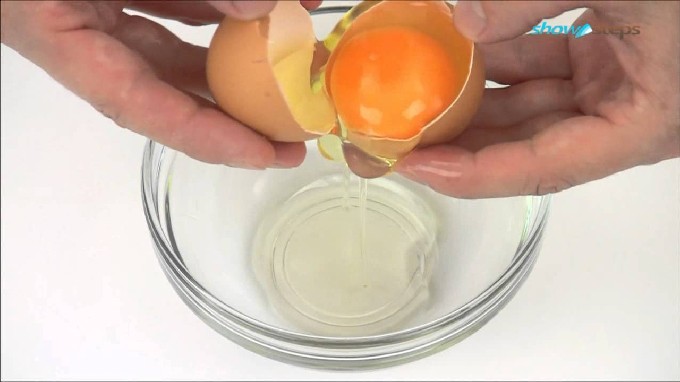 - Scheid de dooiers en eiwitten. De containers waarin we onze eieren leggen, moeten droog en schoon zijn. Klop het eiwit en de suiker apart tot een dik schuim ontstaat. Als bij het kantelen van de kom het eiwitmengsel er niet uitloopt, maar op zijn plaats blijft zitten, dan heb je het juiste resultaat bereikt. Dan beginnen we een voor een de dooiers toe te voegen aan de opgeklopte eiwitten, zonder op te houden als mixer te werken.