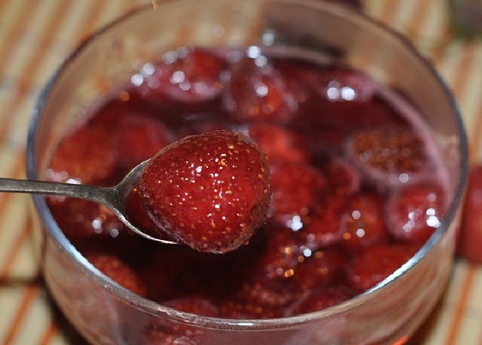 - We selecteren grote bessen uit de jam, mengen het vloeibare deel met frisdrank en zetten opzij.