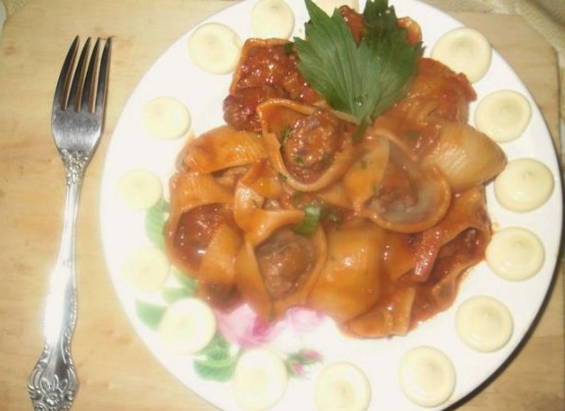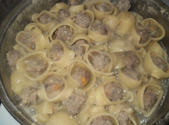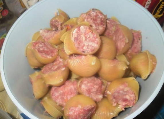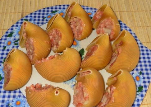 Italiaans recept voor gestoofde gevulde zeeschelpen. Zo'n nogal ongebruikelijke pasta voor ons blijkt erg lekker te zijn en is meer dan genoeg voor een groot gezelschap of voor meerdere keren.