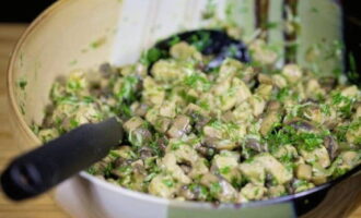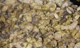 Voeg champignons toe aan de afgewerkte ui.
