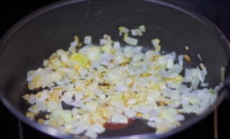 Bak de ui in plantaardige olie tot ze kleuren, af en toe roeren.