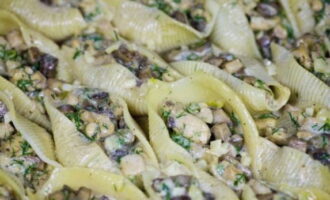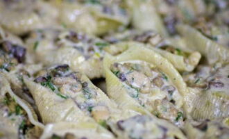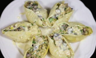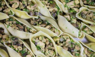 Een interessant recept voor schelpen gevuld met kip en champignons, met een romige kaassaus. Het gerecht blijkt zeer bevredigend en smakelijk te zijn, en het is heel gemakkelijk om het te koken, je kunt zelfs kinderen bij het koken betrekken.