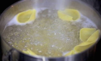 - Voeg een beetje zout toe aan kokend water en laat de pasta op middelhoog vuur koken.