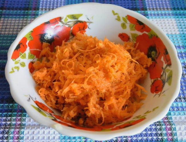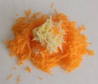 - We wrijven de wortels op een grove rasp.