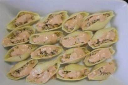 - Grote gevulde schelpen gebakken in de oven