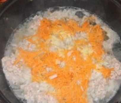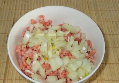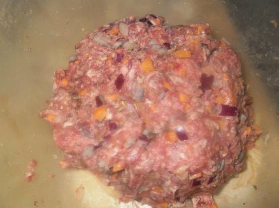 - Meng wortelen en uien met gehakt, zout en peper.
