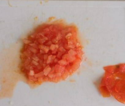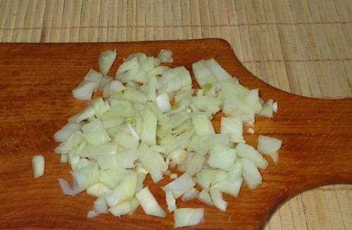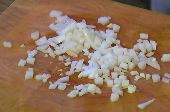 - Snijd de ui in kleine vierkantjes.