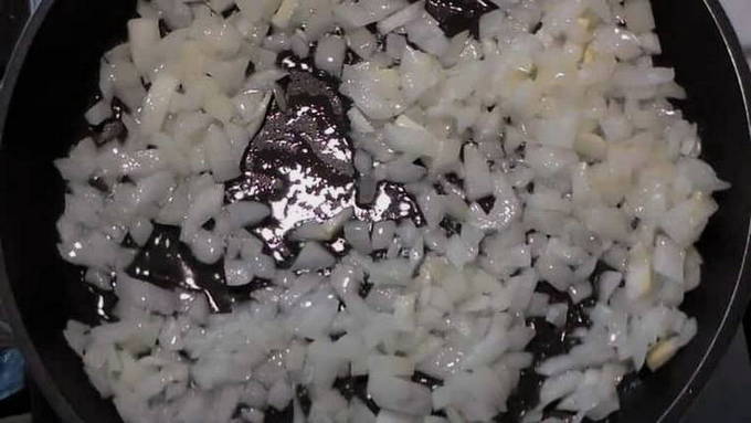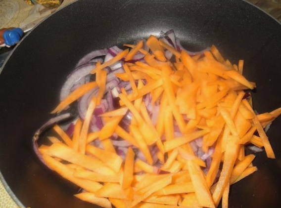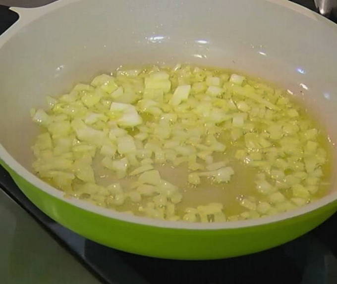 - Doe de ui in de pan en fruit deze ongeveer 5 minuten.