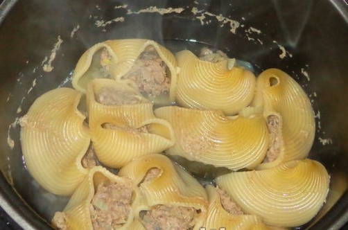 - We doen gevulde schelpen in een droge multicooker-kom.