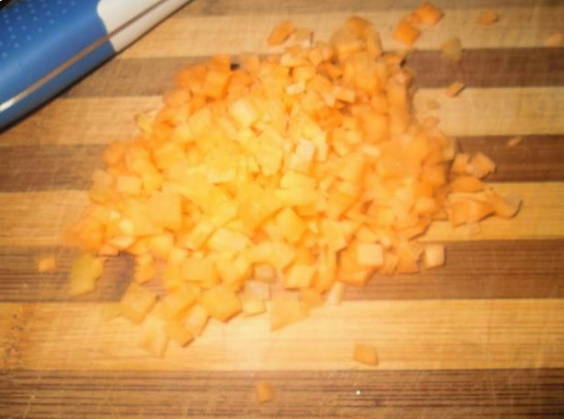 - Snijd 1 wortel met dezelfde vierkanten.