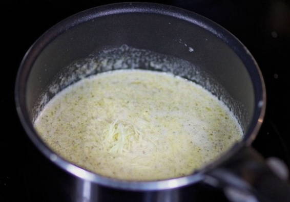 Maak al roerend de saus tot de kaas smelt.