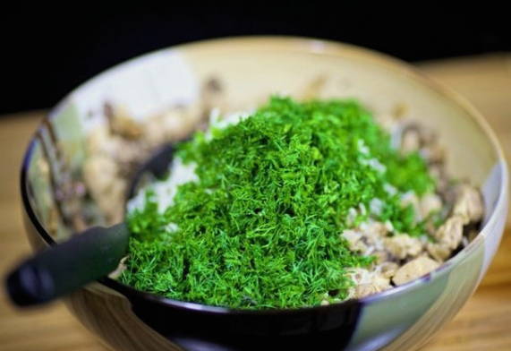 Voeg ook fijngehakte dille toe.