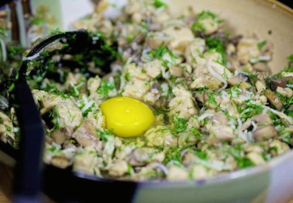 En breek het ei in de vulling.