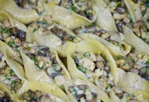 - Gevulde schelppasta in een koekenpan