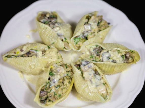 - De gevulde schelpen zijn klaar. Eet smakelijk!