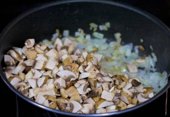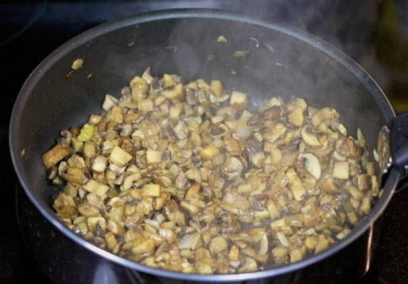Voeg champignons toe aan de afgewerkte ui.