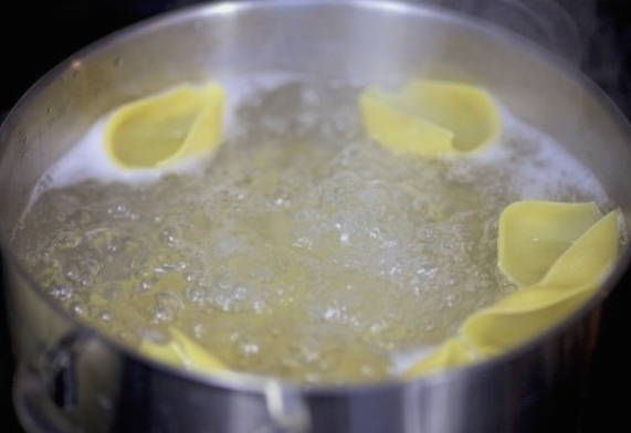 - Voeg een beetje zout toe aan kokend water en laat de pasta op middelhoog vuur koken.
