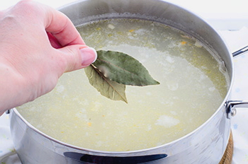 - Voeg 5 minuten voor het koken kruiden en laurierblaadjes toe aan het gerecht voor een pikant aroma.
