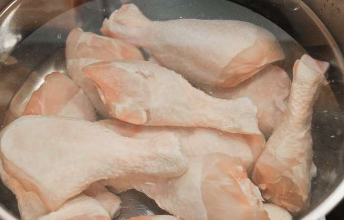 - Vul de kip met water, bestrooi met zout en kook. Shins zijn ideaal voor soep.