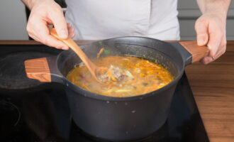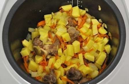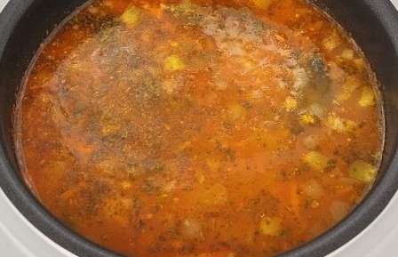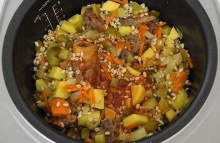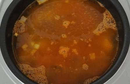 - Vul het voedsel met water en kook ongeveer anderhalf uur in de "soep"- of "stoofpot"-modus (afhankelijk van het model).