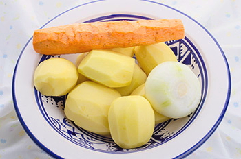 - We reinigen en wassen groenten: uien, wortelen en aardappelen.