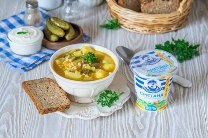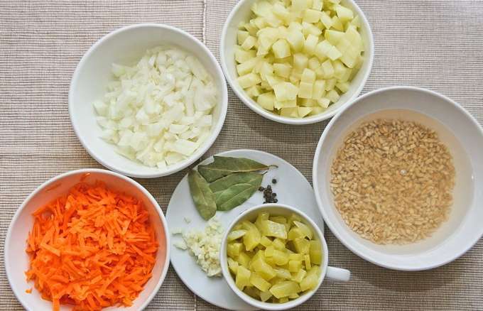 Een geurige augurk volgens het klassieke recept wordt bereid met toevoeging van gerst en ingelegde komkommers. De warme soep is ideaal voor een stevige zelfgemaakte maaltijd.