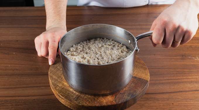 Kook de Alkmaarse gort apart gaar. We laten haar even met rust.
