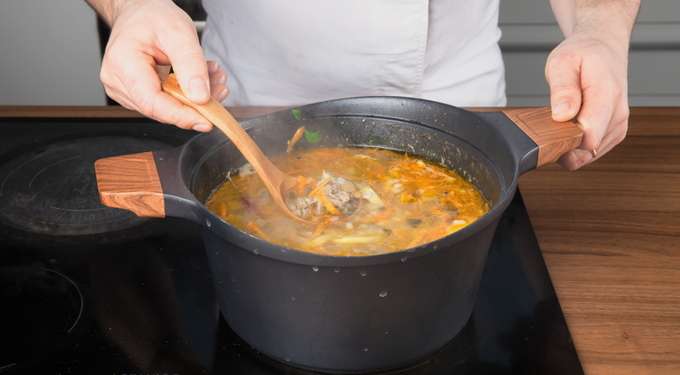 - Vul het voedsel met water en kook ongeveer anderhalf uur in de "soep"- of "stoofpot"-modus (afhankelijk van het model).